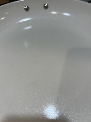 [This review was collected as part of a promotion.] This ceramic coated pan with lid is absolutely beautiful. The gold handles are a really nice touch to make this pan elegant. The nonstick works well, I’ve not had a problem with food sticking since I’ve used it. The only issue is I’m worried about scratching. The size is nice for a small family.