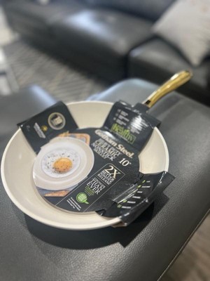 Gotham Steel Cream 10'' Ultra Nonstick Ceramic Fry Pan with Gold Stay Cool Handle