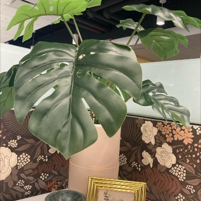 This is a cute, small artificial monstera plant. See, I can not keep a plant alive for anything, so artificial is my way to go. She (the plant) is sleek and pretty, but look closely enough and you can tell she is plastic. If you want something more realistic, this isn't it. But to fill up a space, or to gather with other plant decor, she looks cute.