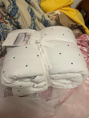 Embroidered Swiss Dot White and Navy Full/Queen Quilt Set - Levtex Home