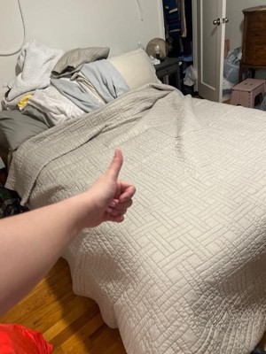 [This review was collected as part of a promotion.] This quilt is very well made and looks great! I love that it’s a neutral color and pattern so it goes well in my bedroom for just about any season. I’m very happy with this set!