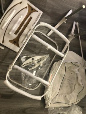 [This review was collected as part of a promotion.] I received this complimentary bassinet from Influensters. My husband and I absolutely love this beside crib (bassinet). There are so many great features. We love the mesh siding that makes it ventilated, cool, and easy to peer in from the side on our infant. Also the adjustable heigh makes this so nice, since we can match it to the bedside height and protect our backs when lifting our little one out. The wheels make rolling and moving this to different rooms a breeze. It's portable, though does not fold up once assembled (which is actually great so it's more safe and sturdy). Lastly we love the drop side feature that makes it easy to reach our little one for nighttime feeds.