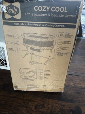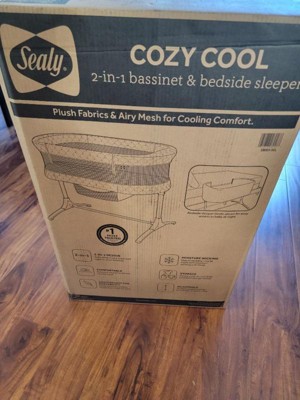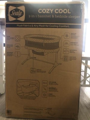 Sealy Cozy Cool 2-in-1 Bassinet & Bedside Sleeper: Adjustable Height, Storage Bin/Shelf, Steel Frame