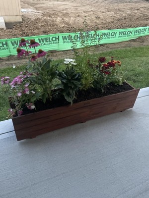 I recently purchased this planter, and I must say, I am thoroughly impressed with it. First off, the installation was a breeze; it took us less than 20 minutes to set it up. What makes me even happier is that the wood appears to have undergone some sort of treatment to extend its durability, which is exactly what I was looking for in an outdoor planter.