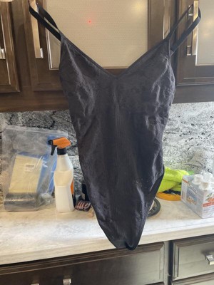 A sexy design that always brings the heat, this soft and seamless lace bodysuit is crafted with high-stretch fabric for a flexible fit you’ll love. The classic V-neck bodysuit features adjustable, convertible straps and wireless 2-ply cups for support and modesty. Detailed with a thong back, it is ideal for effortless layering. Whether worn solo or paired under your favorite jacket, its smooth finish guarantees a flawless look. Maidenform M: Because you deserve intimates as confident as you are.