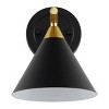 Illuminate your space with the Wyanet wall sconce set of two, where design meets elegance. These 8 inch sconces feature a sleek black and brass finish, adding a touch of classic sophistication to any room. Crafted from iron, this set merges style and function, making it an ideal choice for any living area, hallway, or bedroom. The black and brass tones complement a wide range of decor styles, offering versatility and charm. Enhance your lighting experience with these uniquely designed sconces and transform ordinary walls into visual masterpieces. Ideal for homeowners seeking both aesthetic appeal and practical lighting solutions, Wyanet wall sconces are perfect for creating a warm and inviting ambiance. Each piece reflects a commitment to exceptional craftsmanship and style, making these sconces a standout feature in your home.