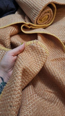 I am in love with this throw blanket! It is SO SOFT and yet it is so warm! The really like the contrast of the yellow stitching on the edges with the blush color fabric. It actually looks more like a faded out rust color in person than in the photos