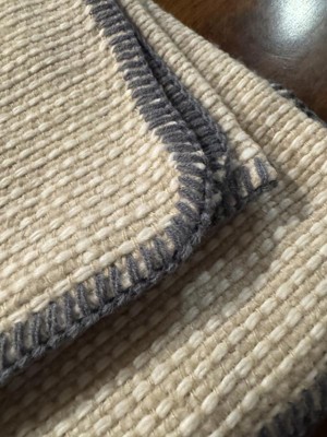 This throw is big enough for an adult and perfect to leave out for decoration. It is surprisingly warm while being light. The weave adds texture while incorporating the neutral shades of tan. The dark grey edging is well stitched and stands out nicely against the tan. The blanket has a light fix and warm feel.