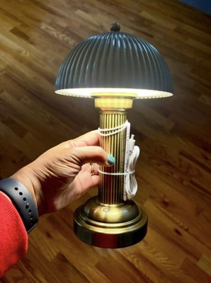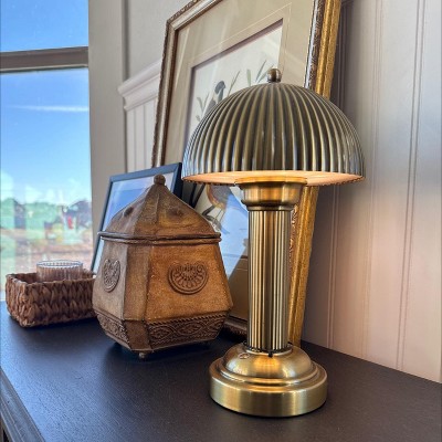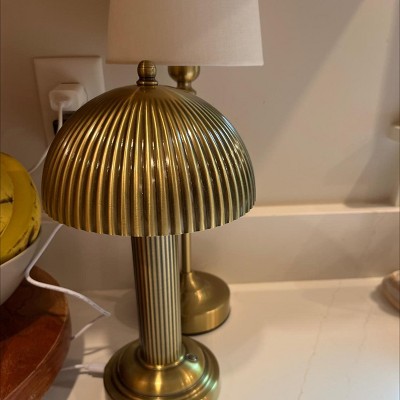11.5" Fluted Metal Rechargeable Library Table Lamp Brass (Includes LED Light Bulb) - Hearth & Hand™ with Magnolia