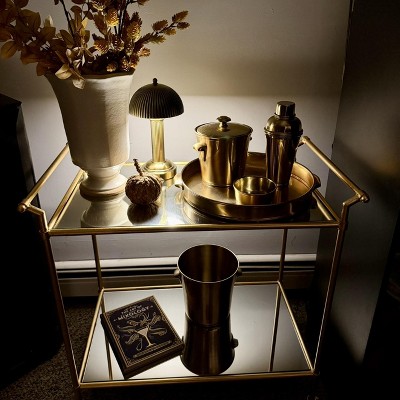 Perfect size, minimalist lamp looks great anywhere. Complements any brass accents when grouped together. It matches perfect with my barware set. The only downside it’s not made out of strong material.