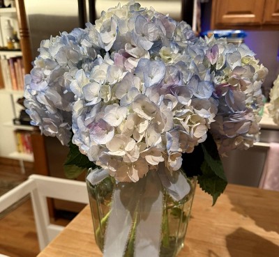 This vase is gorgeous. I bought it as a gift to put with hydrangea blooms and it was amazing.