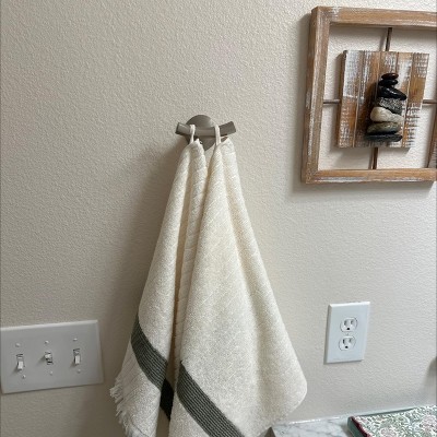 Very pretty and soft hand towel perfect for guest bath. I’m using it on a towel stand but it also has a hanging loop. Love the design and the quality. Length is perfect.