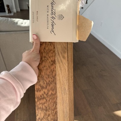 I thought this shelf would go perfect in our bedroom of the same coloring that also has antique brass hardware. What I received was not antique brass but more like an unpolished silver or dark dingy metal. The wood, while I know wouldn’t be exact, looked nothing like what was pictured either. I had to look up what I purchased to make sure there wasn’t an option for a different color that I had accidentally picked. It just isn’t represented properly. The construction isn’t very good either with one side loose. It’s unfortunate because it feels like this is starting to become more and more common with this Hearth & Hand line.