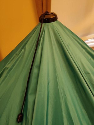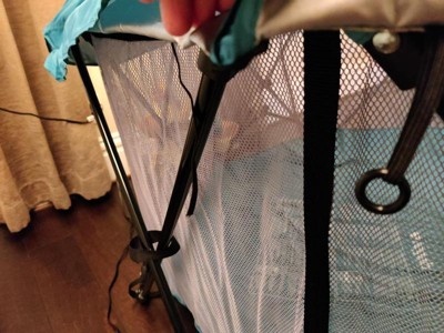 [This review was collected as part of a promotion.] I was very excited when I received it. It's defective and a few things are not working . I kept it near my kiddo play area to play inside the tent. The side loops are defective as seen in the picture . There is no way I can tie the sides . The head string is not working. It's definitely light weight. It was easy to set up.