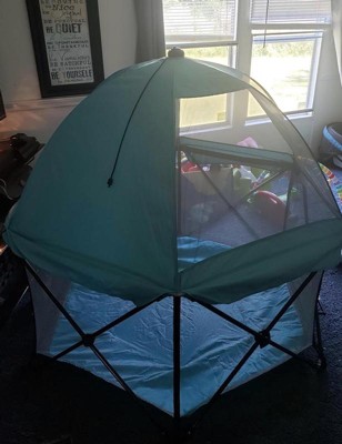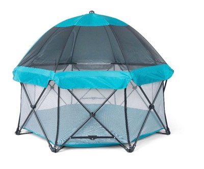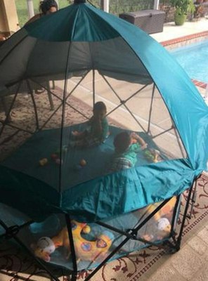 [This review was collected as part of a promotion.] This is perfect to contain our twins in our backyard or places where we need to keep an eye on them. It blocks the sun and we can also use it without the top.