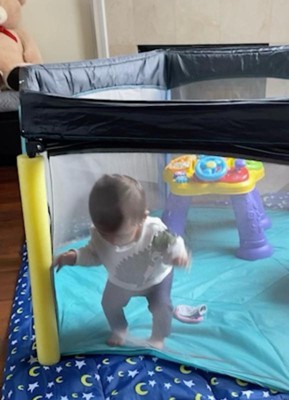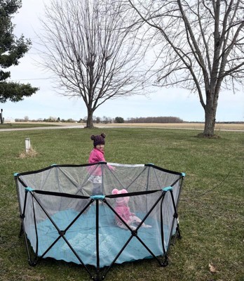 [This review was collected as part of a promotion.] I love this portable play yard! It is super lightweight and quick to set up and take down. It is perfect for indoor and outdoor activities and keeps my child safe! It’s pretty spacious and the mesh sides makes it very breathable even with a cover on top. I wish the bottom was thicker or came with a mat to spread out just to add more durability and comfort. Overall, it is amazing for everyday play time!