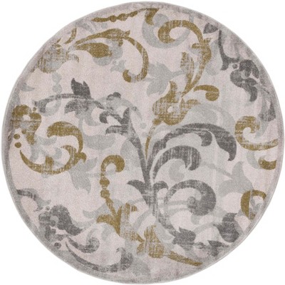 Amherst AMT412 Power Loomed Indoor Area Rug - Ivory/Orange - 5' Round - Safavieh