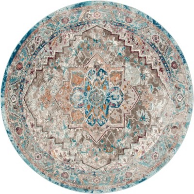 Aria ARA183 Power Loomed Indoor Area Rug - Beige/Blue - 6'5" Round - Safavieh