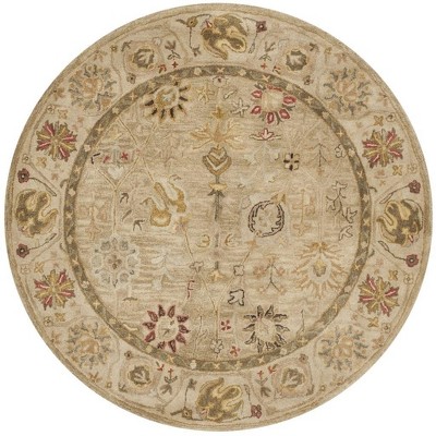 Antiquity AT822 Hand Tufted Area Rug - Brown/Beige - 6' Round - Safavieh.