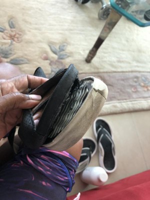 We are so sorry to see that this has happened with your sandals. We understand your concern. We may have options for you regarding the shoes, if you could please contact us so we can go other those with you. You can send a message at https://drschollshoes.custhelp.com/app/ask/ or call our DrSchollsShoes.com Consumer Care Department at 1-800-558-7614. The Call Center hours of operation are Monday-Friday 9:00a.m.-6:00p.m. and Saturday 10:00a.m.-5:00p.m. CT. We appreciate your review and we have forwarded your comments to our design team. Thank you for your feedback.