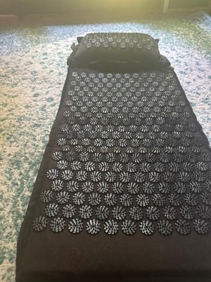[This review was collected as part of a promotion.] This acupressure mat is wonderful! I have an autoimmune condition and struggle with chronic pain and fatigue and this mat definitely helps with that. I had an old Acushakti mat that my dog had gotten to LOL, but this mat is not only bigger (1-2 more rows of pokers (? - not sure what the proper term is), but the game-changer is the PILLOW!! If you hold tension in your neck/the base of your skull like I do, this is FABULOUS to help relieve the pain and tightness. And to top it all off, the set comes with a handy little tote to store everything in. Such a great little set. Highly recommend for general pain-relief and wellness!