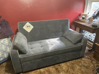 [This review was collected as part of a promotion.] What a gem this convertible sofa is. Looks terrific. Very handsome and clean lines. Great quality. Love the thickness of the fabric and the white piping accents. Wipes clean very easily. Easy to assemble the unit to a couch from the box. It easily converts to a queen bed with a simple clock. And it is quite comfortable to sleep on with the Serta brand sleeper!