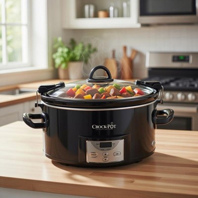Crock-Pot 7 Quart Cook n' Carry Programmable Countdown Ovenproof Slow Cooker with Removable Stoneware, Easy Locking Gasket Lid & Carrying Handles