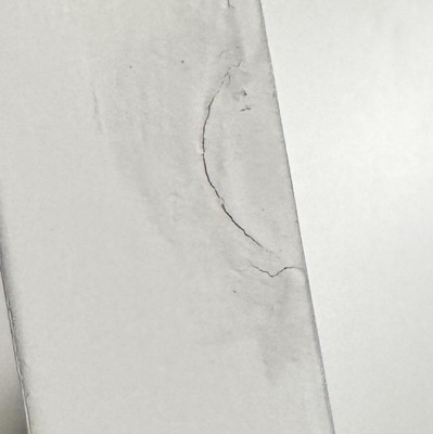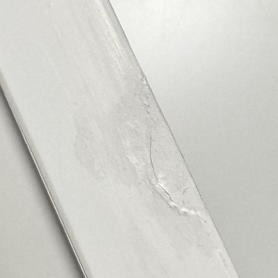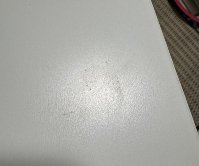 Came with glue on surfaces that does not come off, gouges and holes that were poorly patched and repainted, and edges coming off