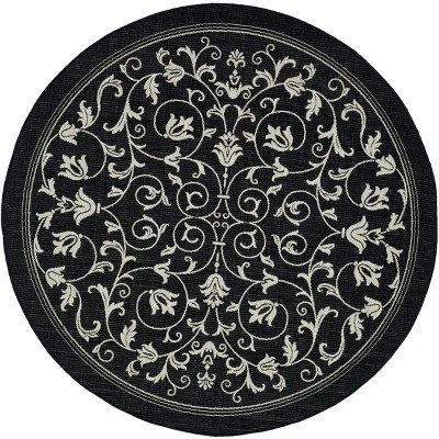 Courtyard CY1906 UV & Stain Resistant Non-Shedding Power Loomed Indoor/Outdoor Area Rug - Black/Sand - 7'10" Round - Safavieh