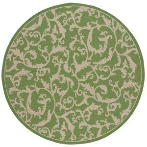 Elevate your decor with the timeless elegance and versatile style of our Olive/Natural Round Area Rug. Spanning a generous 6'-7" in diameter, this exquisite piece showcases a classic, intricate pattern that whispers sophistication into any space, whether indoors or out.