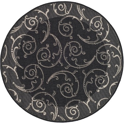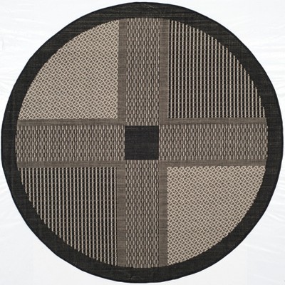 Courtyard CY2098 UV & Stain Resistant Non-Shedding Power Loomed Indoor/Outdoor Area Rug - Black/Sand - 5'3" Round - Safavieh