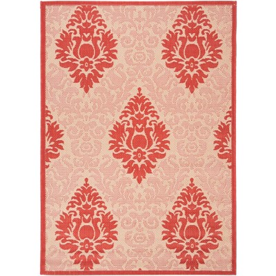Courtyard CY2965 UV & Stain Resistant Non-Shedding Power Loomed Indoor/Outdoor Accent Rug - Natural/Red - 2'7"x5' - Safavieh
