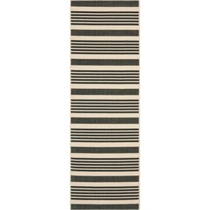 Courtyard CY6062 UV & Stain Resistant Non-Shedding Power Loomed Indoor/Outdoor Runner Rug - Black/Bone - 2'3"x6'7" - Safavieh