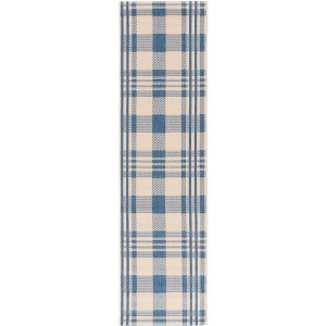 Courtyard CY6201 UV & Stain Resistant Non-Shedding Power Loomed Indoor/Outdoor Runner Rug - Beige/Blue - 2'3"x10' - Safavieh