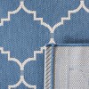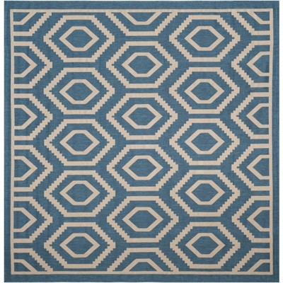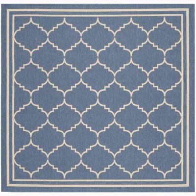 Introduce timeless elegance to your living spaces with this exquisite square area rug, measuring a versatile 6'-7" X 6'-7". Crafted in Turkey using the precision of power looming, this durable rug features a robust blend of 88% Polypropylene and 12% Polyester, giving it a subtly textured 1/4" pile height that's suitable for indoor and outdoor use. It comes in a sophisticated palette of blue and beige, with a beautiful pattern of interconnected trellis motifs that provide an air of classic charm. Although not washable and lacking slip resistance, its quality construction ensures longevity and steadfast style. Add a flourish of timeless grace to your decor with this alluring accessory.