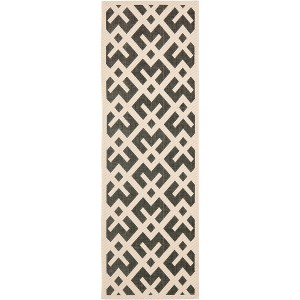 Courtyard CY6915 UV & Stain Resistant Non-Shedding Power Loomed Indoor/Outdoor Runner Rug - Black/Beige - 2'3"x6'7" - Safavieh