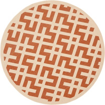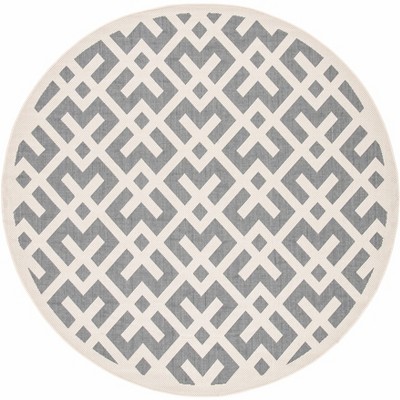 Courtyard CY6915 UV & Stain Resistant Non-Shedding Power Loomed Indoor/Outdoor Area Rug - Black/Beige - 5'3" Round - Safavieh