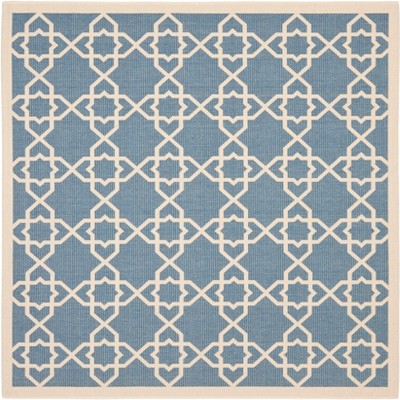 Enhance any living space with the elegant and versatile design of our Indoor/Outdoor area rug. Sized perfectly at 7'-10" X 7'-10", this square rug creates a harmonious look that's a perfect fit for both contemporary and traditional settings. The refreshing blue and bone colors, mixed with a sophisticated geometric pattern, are sure to complement your style.