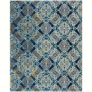 Elevate your living space with the exquisite charm of our 9' X 12' Royal and Light Blue area rug. This large rectangular rug showcases a beautiful blend of elegance and durability, masterfully power-loomed to create a plush and long-lasting foundation for your home. Featuring a striking pattern that exudes a regal essence, the rug's design is a tapestry of intricate motifs, gracefully intertwined in shades of blue and accented with touches of golden hues. This seamlessly aligns with both contemporary and traditional decor, ensuring a perfect match with your personal style. Each fiber is meticulously chosen for resilience and comfort?66% Polypropylene for durability, 27% Jute for a natural, earthy feel, 5% Polyester for a subtle sheen, and 2% Cotton for softness?making this rug equally luxurious and hardwearing. Proudly made in Turkey, the hub of world-renowned rug craftsmanship, this piece reflects a legacy of quality and expertise. Plus, the OEKO-TEX certification provides peace of mind, confirming that your rug is free from harmful substances and safe for all members of your household. Bring home this Turkish treasure and infuse your space with a touch of sophistication that is both visually stunning and delightfully tactile.