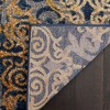 Elevate your living space with the vibrant and luxurious Medium Rectangle Area Rug, measuring 6'-7" X 9', meticulously crafted through an advanced Power Loomed technique. This exquisite rug boasts a rich color palette dominated by captivating shades of blue and orange, perfectly complemented by its stylish pattern, which features intricate scrolls and floral motifs.