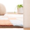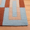 The rug features an eye-catching geometric pattern, with interlocking rectangles in a serene light blue and warm rust palette, outlined by delicate cream accents. The medium rectangle shape adds to its versatility, making it an ideal choice for a variety of room settings.