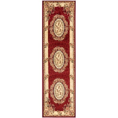 The stunning RED / IVORY color palette of this rug is accentuated by an exquisite pattern, as depicted in the image, featuring a grand central medallion surrounded by a harmonious arrangement of florals and intricate borders. The traditional design elements are rendered with precision, creating an opulent focal point in any hallway or narrow space in need of an elegant touch.