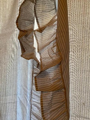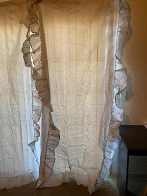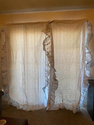 [This review was collected as part of a promotion.] I'm very happy with my Lush Décor Farmhouse Reyna Ruffle curtains. The pictures I included show the panels before washing or even fluffing in the dryer and placing them on the rod and they're already beautiful. They are high quality and the thickness is just right without being lined. These are not sheer curtains. The ruffle is pretty and unique and makes these panels versatile. I love these panels in my living room and I can see them brightening up a nursery or bedroom too. I definitely recommend!