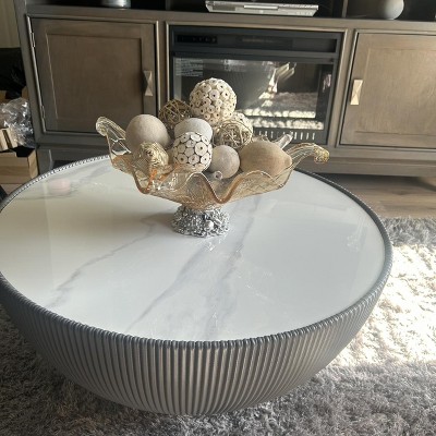 The coffee table is very nice looking. The quality is good. The table top looks expensive. I gave 4 stars because it should not be classified as a coffee table it is very low to the ground and barely the height of a sofa. It’s actually even lower than the arm of a sofa. It’s a great product for something other than a coffee table.