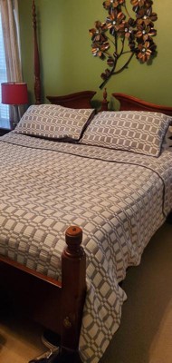 [This review was collected as part of a promotion.] Such a great reversible coverlet set for our queen bed. Really good quality, and washes up very well.