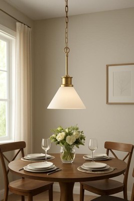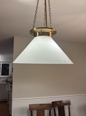 [This review was collected as part of a promotion.] I absolutely love this pendant! The warm brass finish gives such an elegant, timeless look that instantly elevates my dining area. The light it gives off is soft and flattering — bright enough for meals but cozy enough for evenings. The quality is outstanding, from the sturdy chain to the smooth glass shade. It was easy to install and feels like a true statement piece without being over the top. If you’re going for a modern yet classic vibe, this pendant is perfection. Worth every penny!