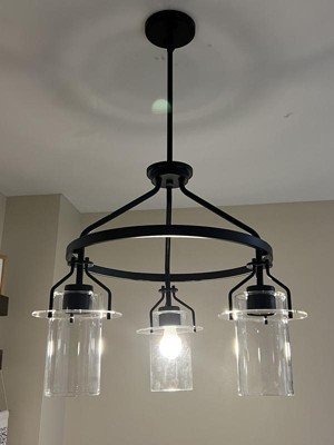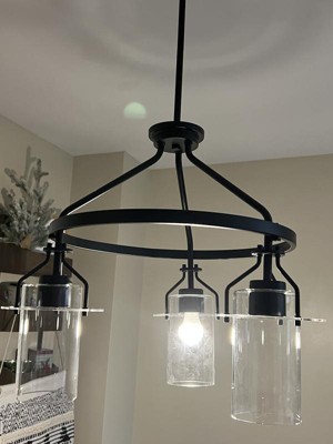[This review was collected as part of a promotion.] This has really changed the look of my kitchen dining area. The installation took my husband and I about 30-45 minutes. All that was really requires was a screw driver, which made the process go by super quickly. The black finish is absolutely stunning, and the glass adds such an elegant touch. This is the start of our kitchen renovation, and I couldn’t be happier! We will be getting fancier light bulbs, but I just wanted to see how it looked lit up.