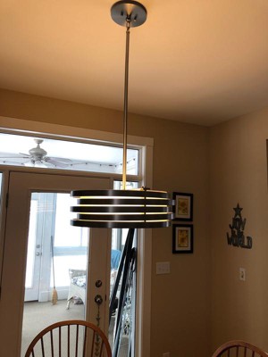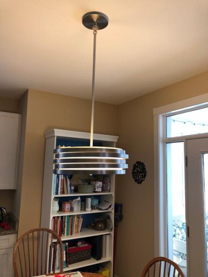 Roswell 7.25" 3 Light Pendant with Satin Etched Diffuser and Off White Linen Shade in Brushed Nickel