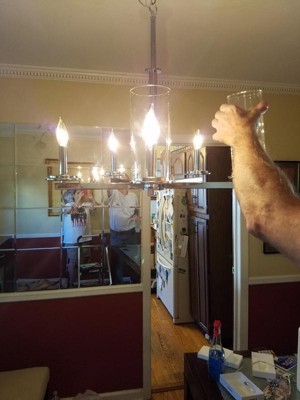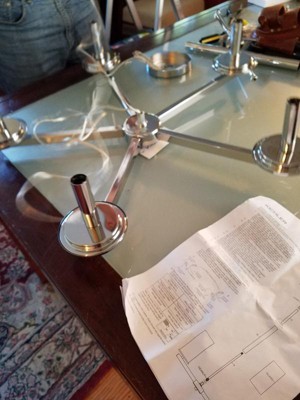 [This review was collected as part of a promotion.] we put this chandelier up over our kitchen table and it looks so pretty. The chrome finish really sets it off and gives our dining room a unique and brighter look. It was easy to install the hardest part was just holding it up while while hubby attached it.