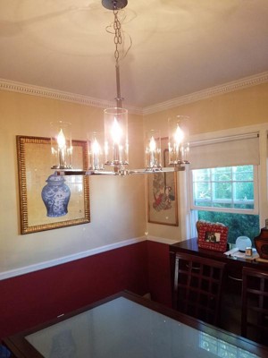[This review was collected as part of a promotion.] This chandelier beyond exceeded my expectations. It arrived well packaged and in a timely manner. The metal is the farthest thing from flimsy, has a beautiful chrome finish and the glass appears to be of very good quality. My husband is not in the trades but has successfully installed many light fixtures during past real estate projects. He found this particular install to be relatively simple and it took him less than 20 minutes from start to finish. He claimed that the instructions were easy to follow which helped in shaving off some of the install time. The top of the chain allows for height adjustment to accommodate a multitude of ceiling heights. The style is incredibly versatile allowing for integration with a multitude of design preferences. I have had two clients in my home to discuss their renovation projects who both requested that the light be worked into their remodels. One project is a very clean and modern design and the other very traditional with contemporary elements. Amazingly, the chandelier seamlessly integrates into both remodel designs. The size is great for a variety of round dining tables and when hanging two above a good sized harvest table. The light is flattering for dinner guests while being bright enough to illuminate your space. The clear glass keeps things airy and open by not obstructing sight lines. Kichler manages to deliver quality at a reasonable price point time and time again. This light is no exception and is fast becoming a designer's best friend. It's a hard task to find a down side to this light and so very easy to fall in love with it!